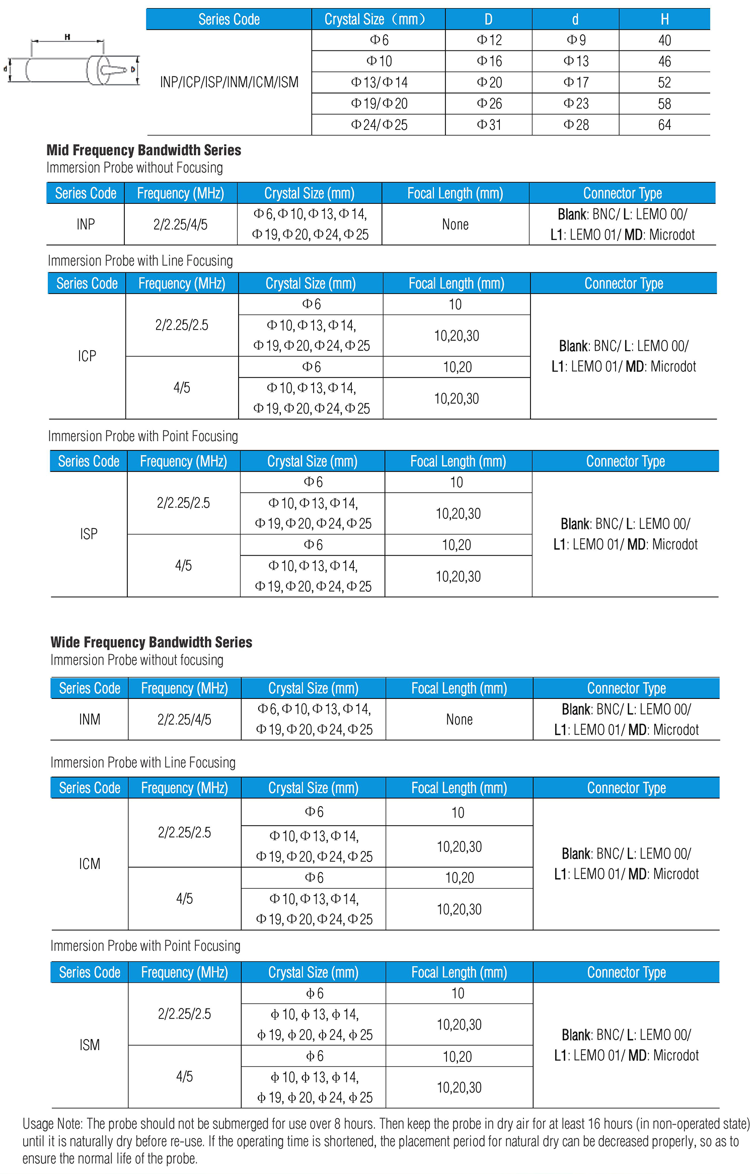Wide Bandwidth — typical -6dB bandwidth range 60%~120%
