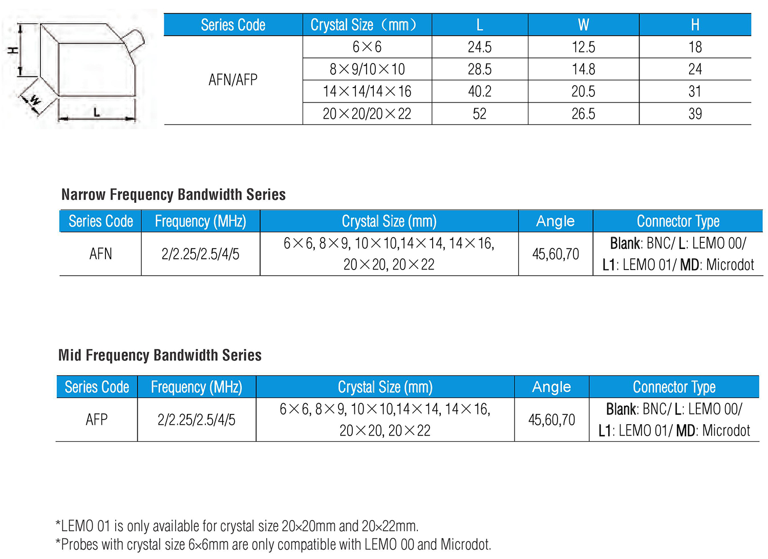Medium Bandwidth — typical -6dB bandwidth range from 20%~30%