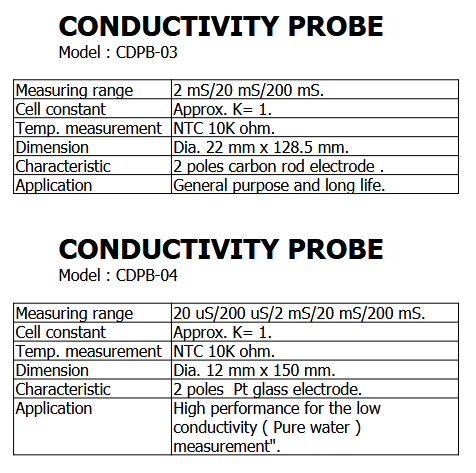 The LUTRON CDPB-03 is a two-pole carbon rod electrode for measuring the conductivity of liquids, including the measurement of TDS and salinity of solutions.