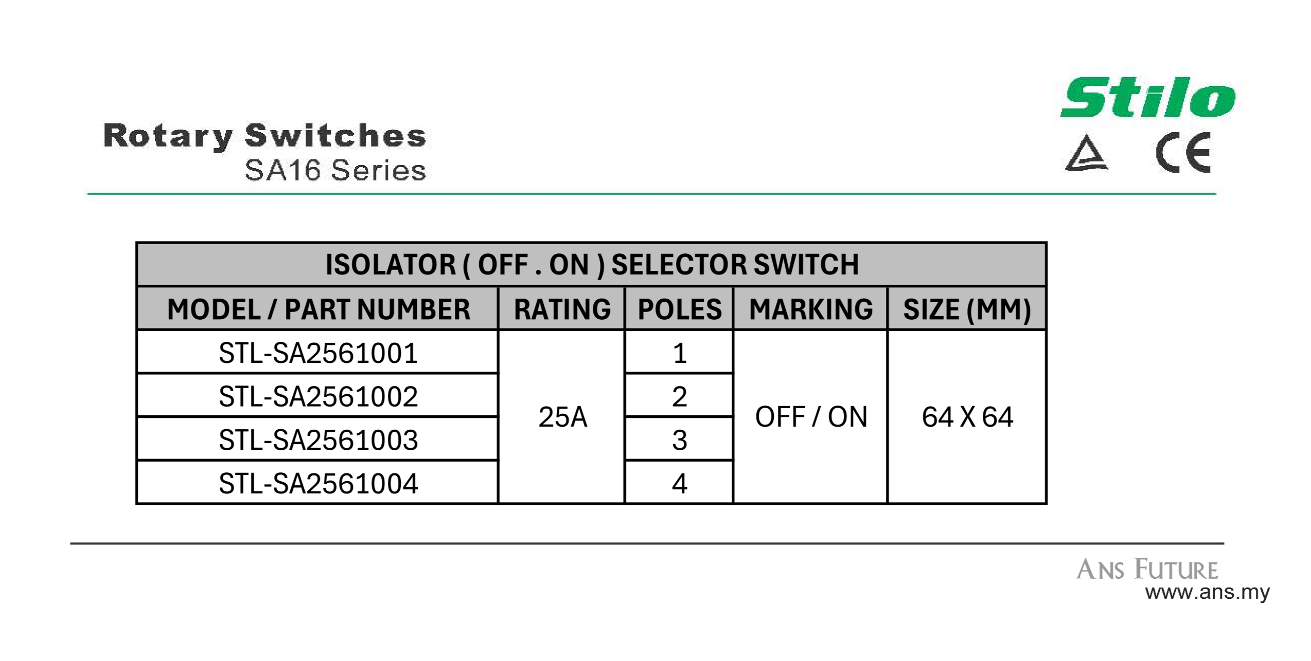 STILO On Off Selector Switch - 25A
