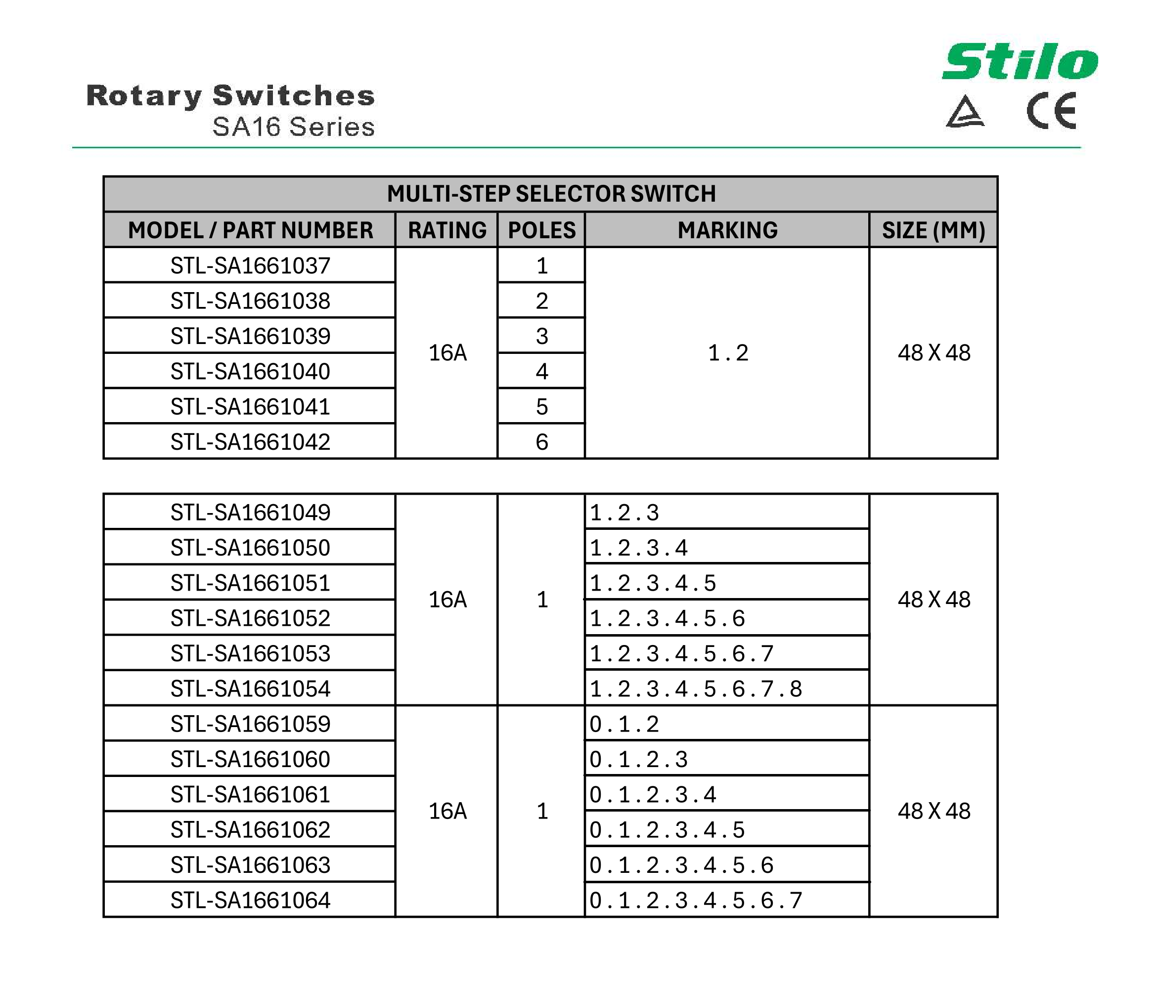 Multi-Step Selector Switch - 16A (1/2/3/4/5/6 Pole)