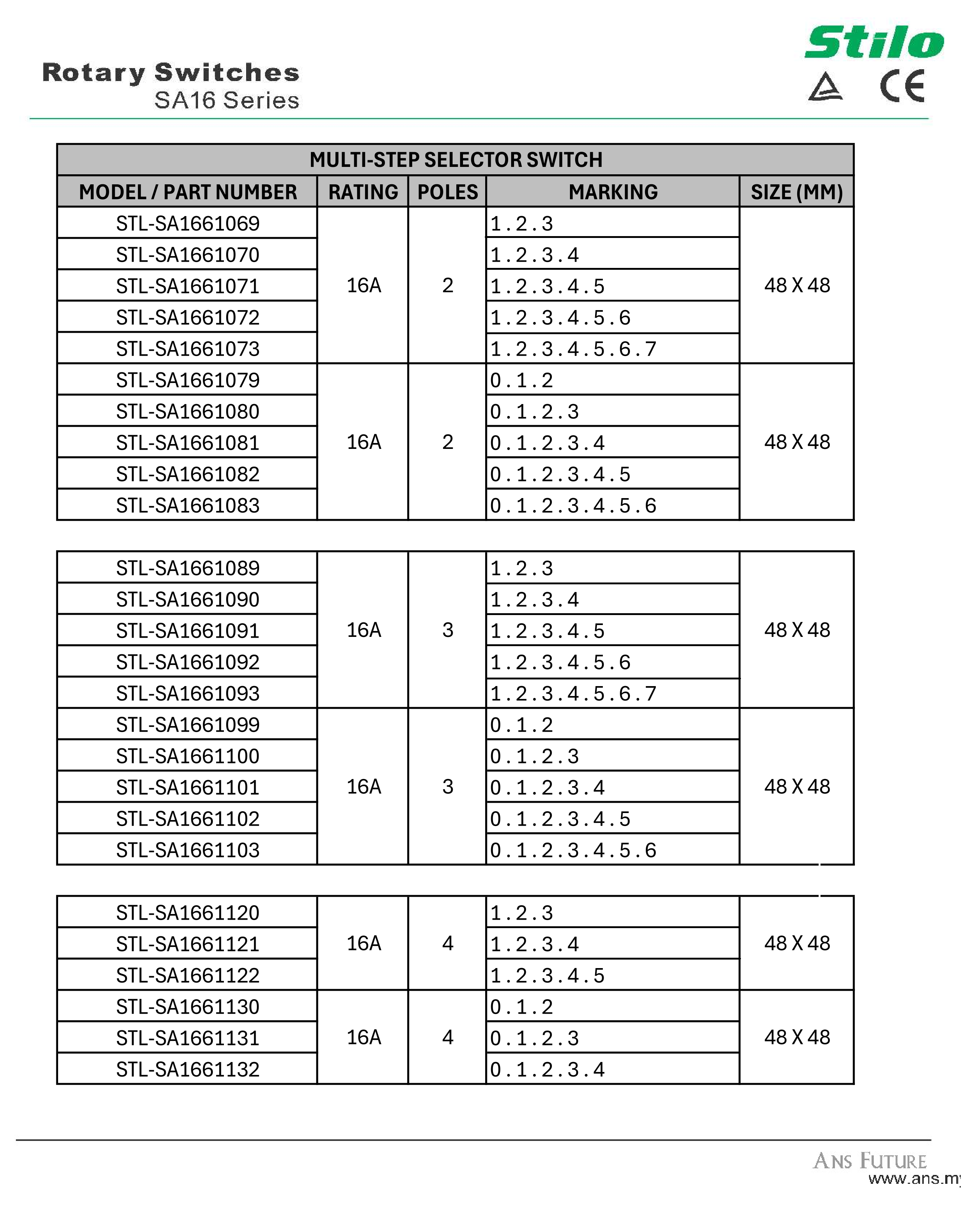 Multi-Step Selector Switch - 16A (1/2/3/4 Pole)