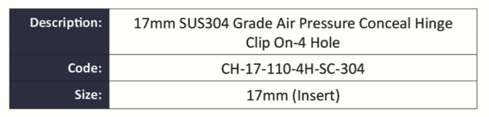 17MM SUS304 GRADE AIR PRESSURE CONCEAL HINGE CLIP ON-4 HOLE