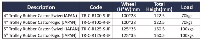 TROLLEY RUBBER CASTOR FOR JAPAN
