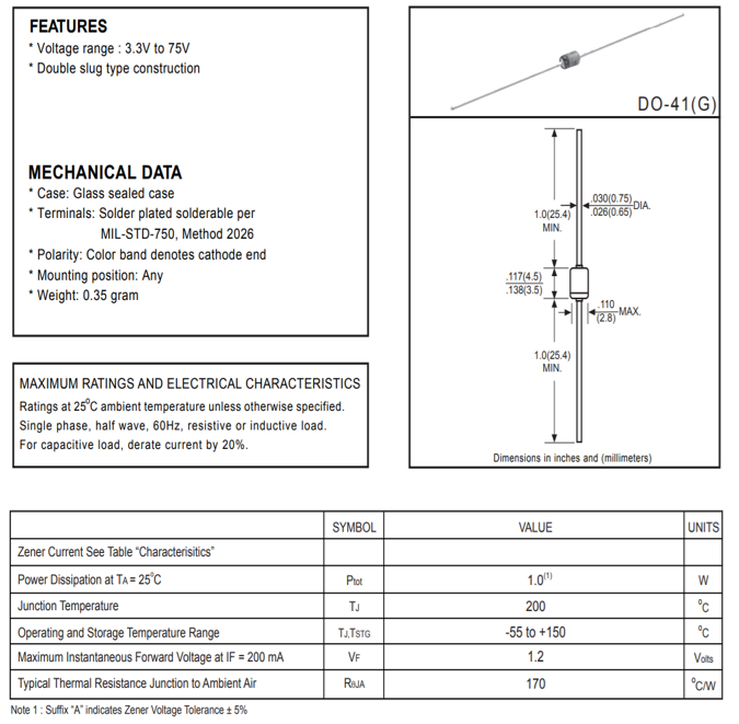 DC - 1N4751A 1W 30V DO-41G ZENER DIODE