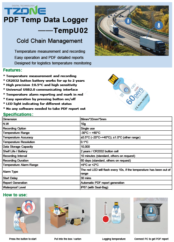 TempU02 Tzone PDF Temperature Data Logger Supplier
