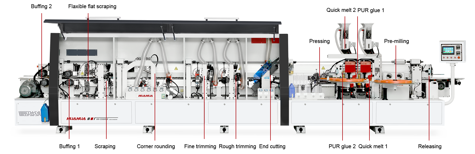 The pressing unit, aligning unit and tracking unit all use independent lifting to prevent the panel from shaking and shifting, making it tighter and more stable, with precise edge banding.