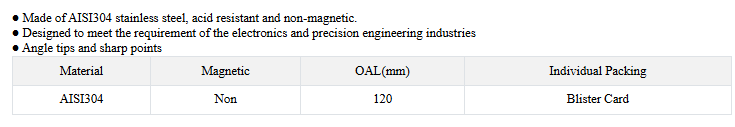 The 1PK-110T is a 120mm Cutting Tweezers that is made of anti-magnetic and
