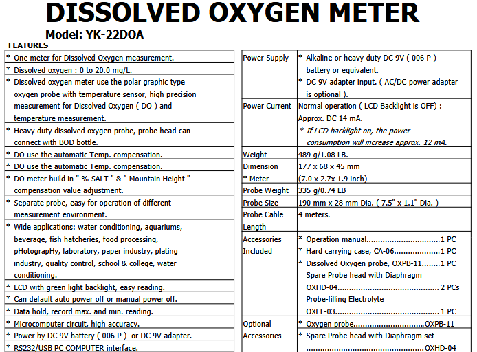 Lutron YK-22DOA is a Dissolved Oxygen Meter.