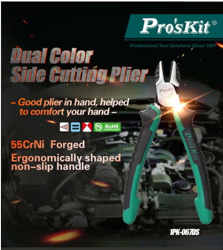 PRO'SKIT 1PK-067DS DUAL COLOR SIDE CUTTING PLIER (165MM)