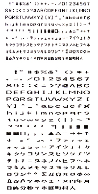 Character | Alphabet, Numbers, Katakana, Symbols, etc. | JIS 1st std. non-Kanji, 2nd and 3rd std. |