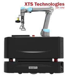 The manipulator is mounted on the SEER AMB series unmanned transport chassis, and can be compatible with a variety of manipulators, including ABB YuMi, UR 3/5/10, AUBO I3, I5, I7, I10, etc., complete the construction of the environment map and high-precision positioning through the laser SLAM algorithm. The repetitive positioning accuracy of the laser mirrorless (reflector) is within ±5mm, and the docking accuracy is ±2mm. The AMB-based compound robot according to the system scheduling instructions, material can be transported from the mobile robot to the equipment machine for loading, or from the equipment machine to the mobile robot for unloading. In addition, it is also possible to carry out omni-directional detection of goods by loading visual sensors on the robot arm.