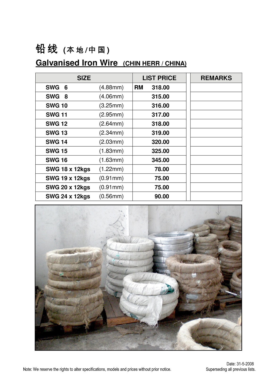GALVANISED IRON WIRE CHIN HERR CHINA (WS)
