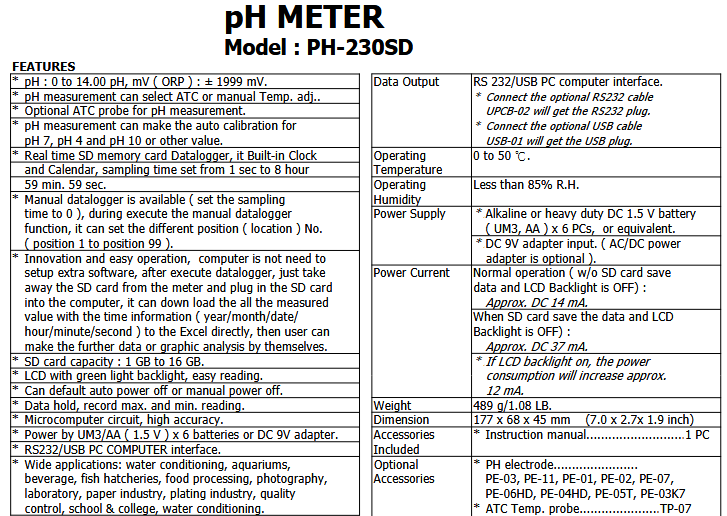 Lutron PH-230SD is a pH meter with a real time data logger.