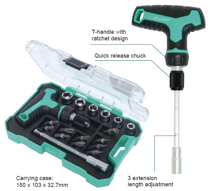 PRO'SKIT [SD-2320M] 18 in 1 Mini T-handle RatchetSet