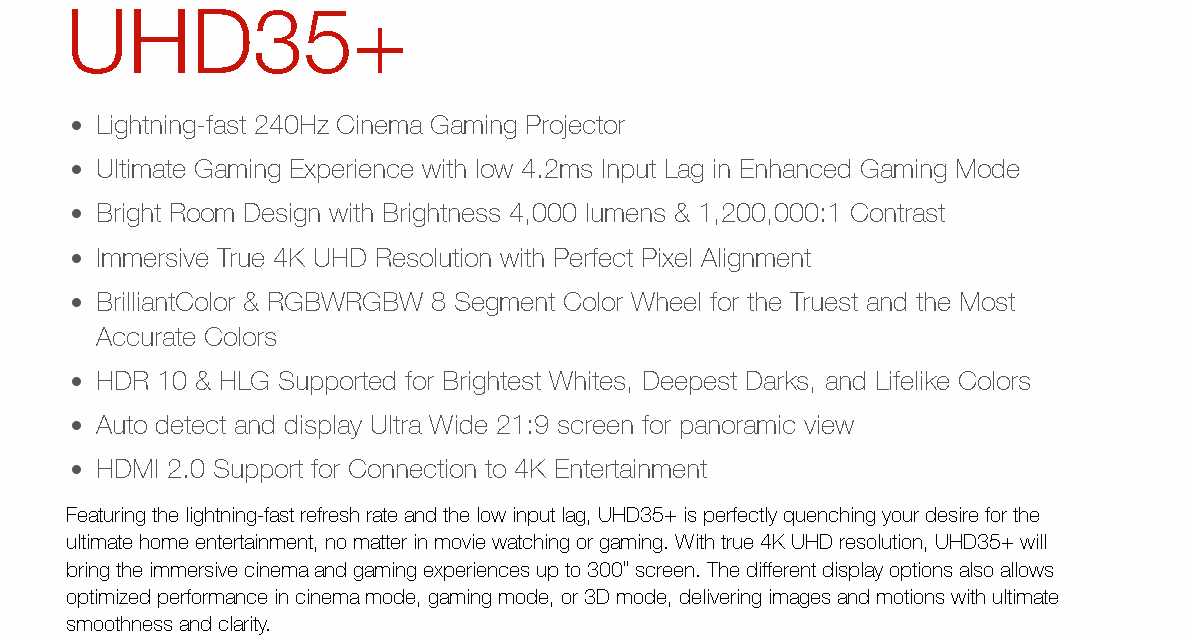 Optoma UHD35+ 4K UHD home theater & gaming experience