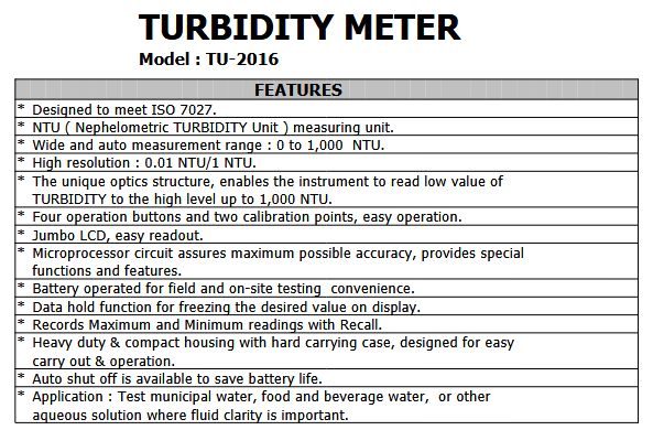 The LUTRON TU-2016 is a turbidity meter for water and solutions for food purposes.