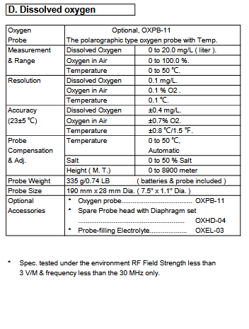 Dissolved oxygen : 0 to 20.0 mg/L.