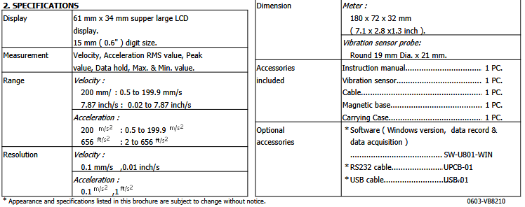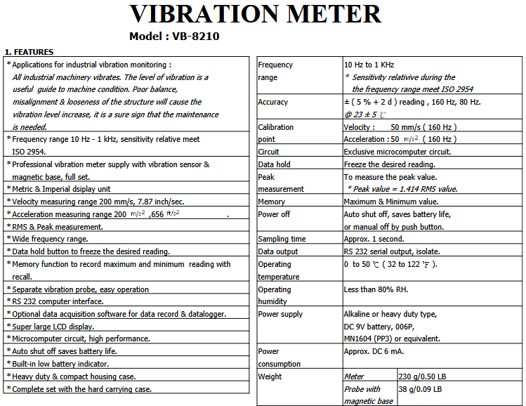 LUTRON VB-8210 is professional vibration meter with vibration sensor and magnetic base.