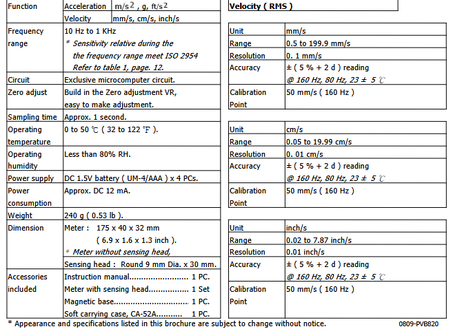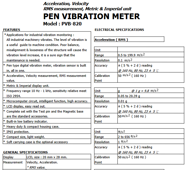 The Lutron PVB-820 is a pen type vibration meter with internal vibration sensor.