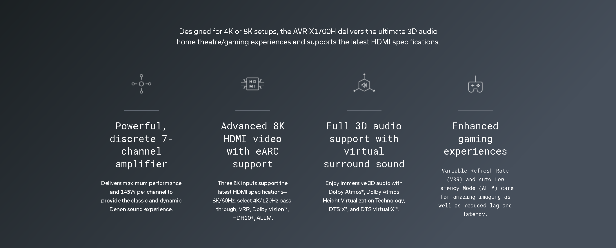 DENON AVR-X1700H 7.2Ch 8K Atmos Network AV Receiver