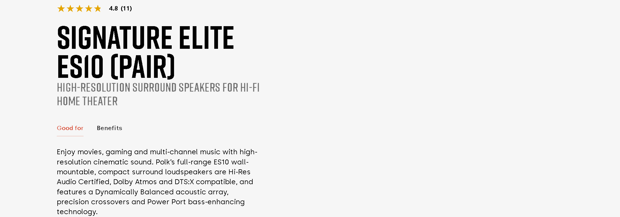 Polk Audio SIGNATURE ELITE ES10 (PAIR) HIGH-RESOLUTION SURROUND SPEAKERS FOR HI-FI HOME THEATER