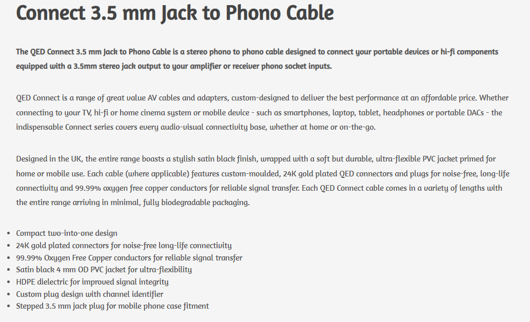 Qed Connect 3.5mm Jack to RCA Cable 1.5Meter