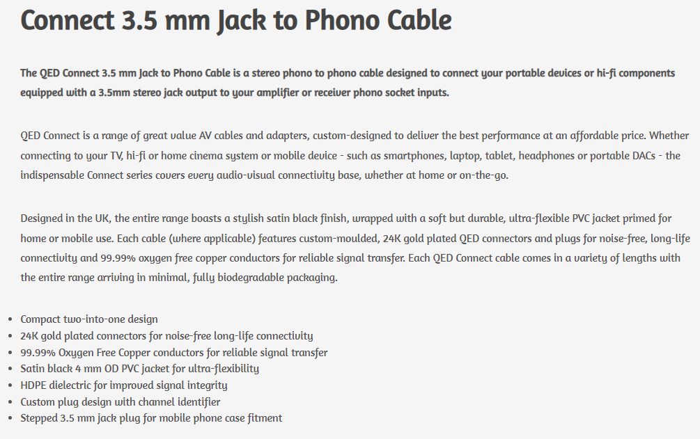 Qed Connect 3.5mm Jack to RCA Cable 3Meter
