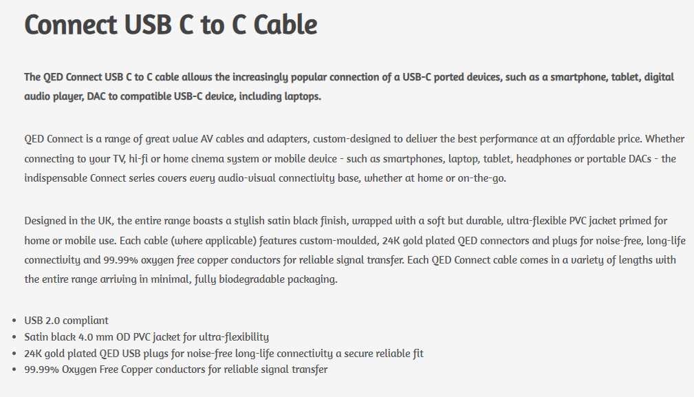 24K gold plated QED USB plugs for noise-free long-life connectivity a secure reliable fit