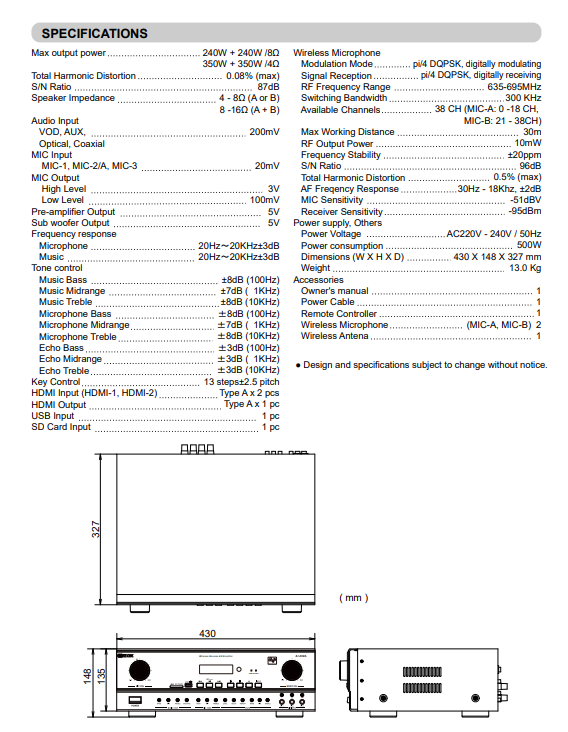 BIK BJ-AU88+ Karaoke AV Amplifier with Wireless Mircrophone