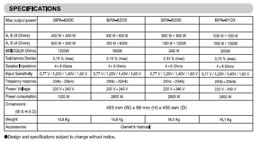 BIK BPA-4200/6200/8200 2 Channel Power Amplifier