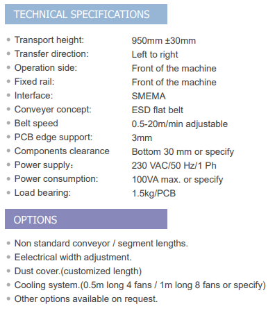 Smooth and parallel width adjustment.(lead screw) SMEMA compatible.