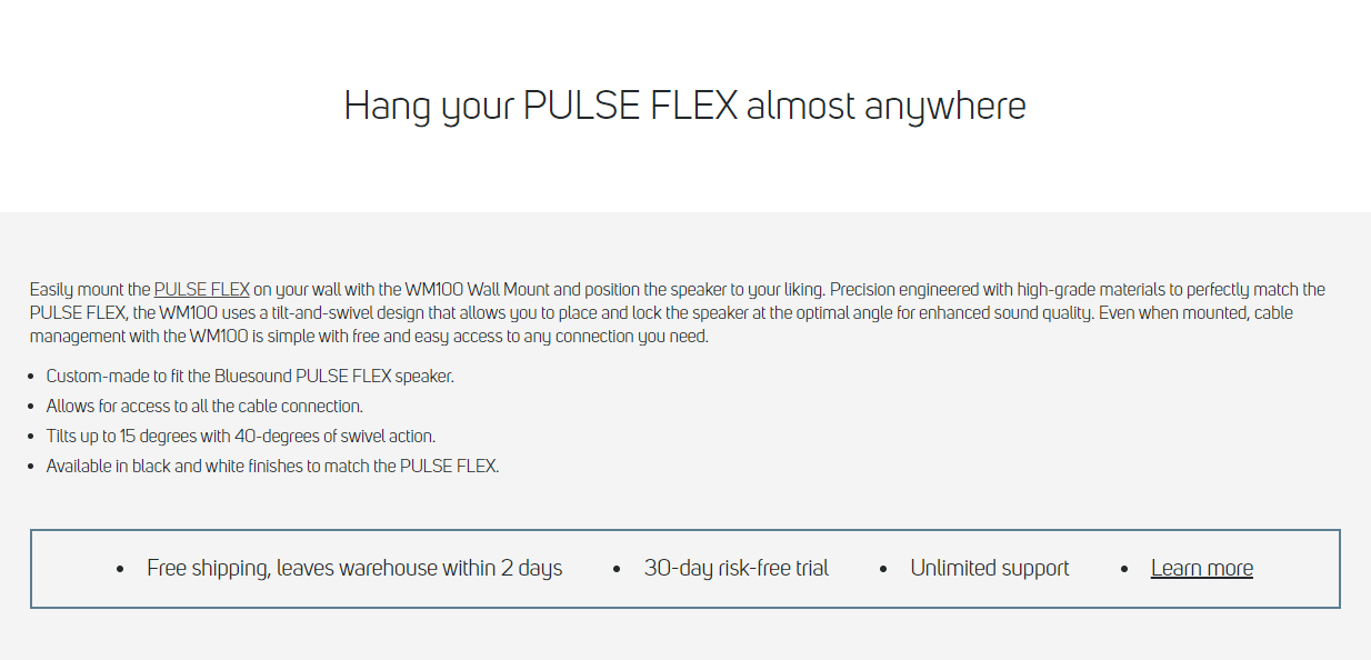 Bluesound WM100 Pulse Flex Wall Mount Bracket