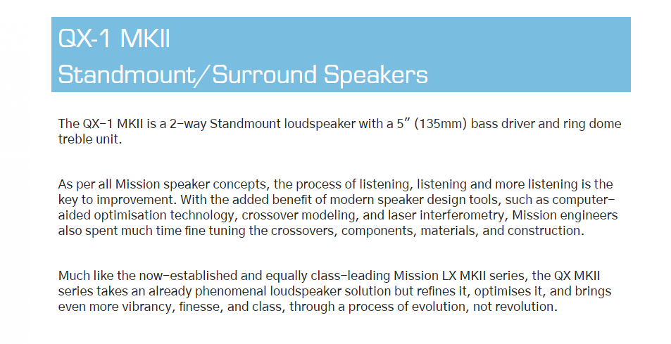 Mission QX-1 MKII Bookshelf Speaker