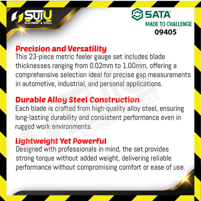 - This 23-piece metric feeler gauge set includes blade thicknesses ranging from 0.02mm to 1.00mm, offering a comprehensive,industrial,and personal applications.