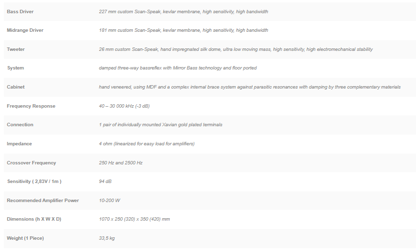 Selected high quality custom drivers from Danish brand Scan-Speak with Kevlar diaphragms ensure perfect reliability, low distortion and neutral tonality. Combined with our sophisticated crossovers and innovative circuitry, defining a new era of Xavian sound, the listening experience remains supremely musical and non fatiguing over the long term. Exceptional sensitivity is also a strength, leading to unprecedented airiness, vibrancy and dynamic reproduction. As a result, the Concerto offers great performances in low and medium volumes.