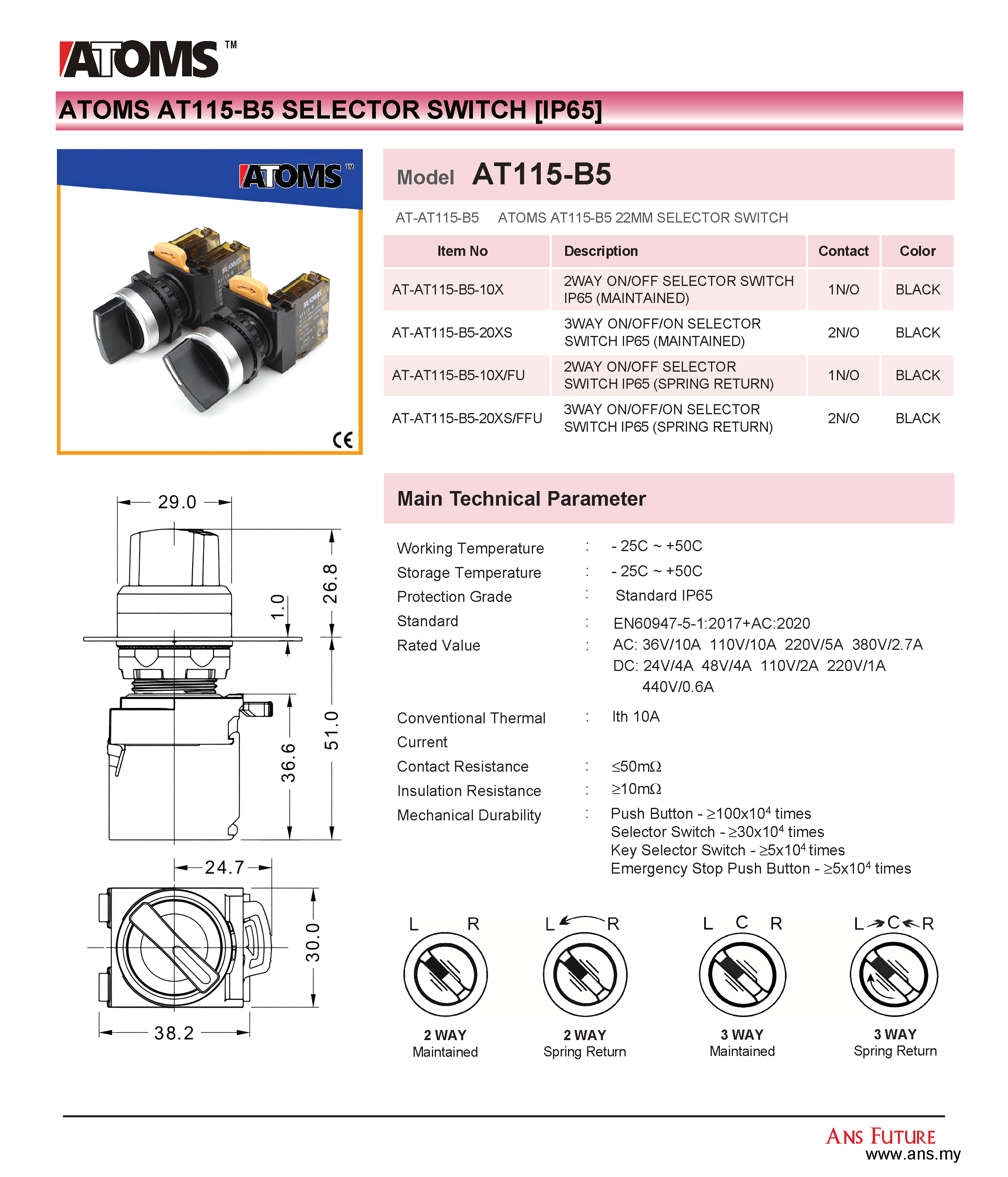 ATOMS AT115-B5 Selector Switch (IP65)