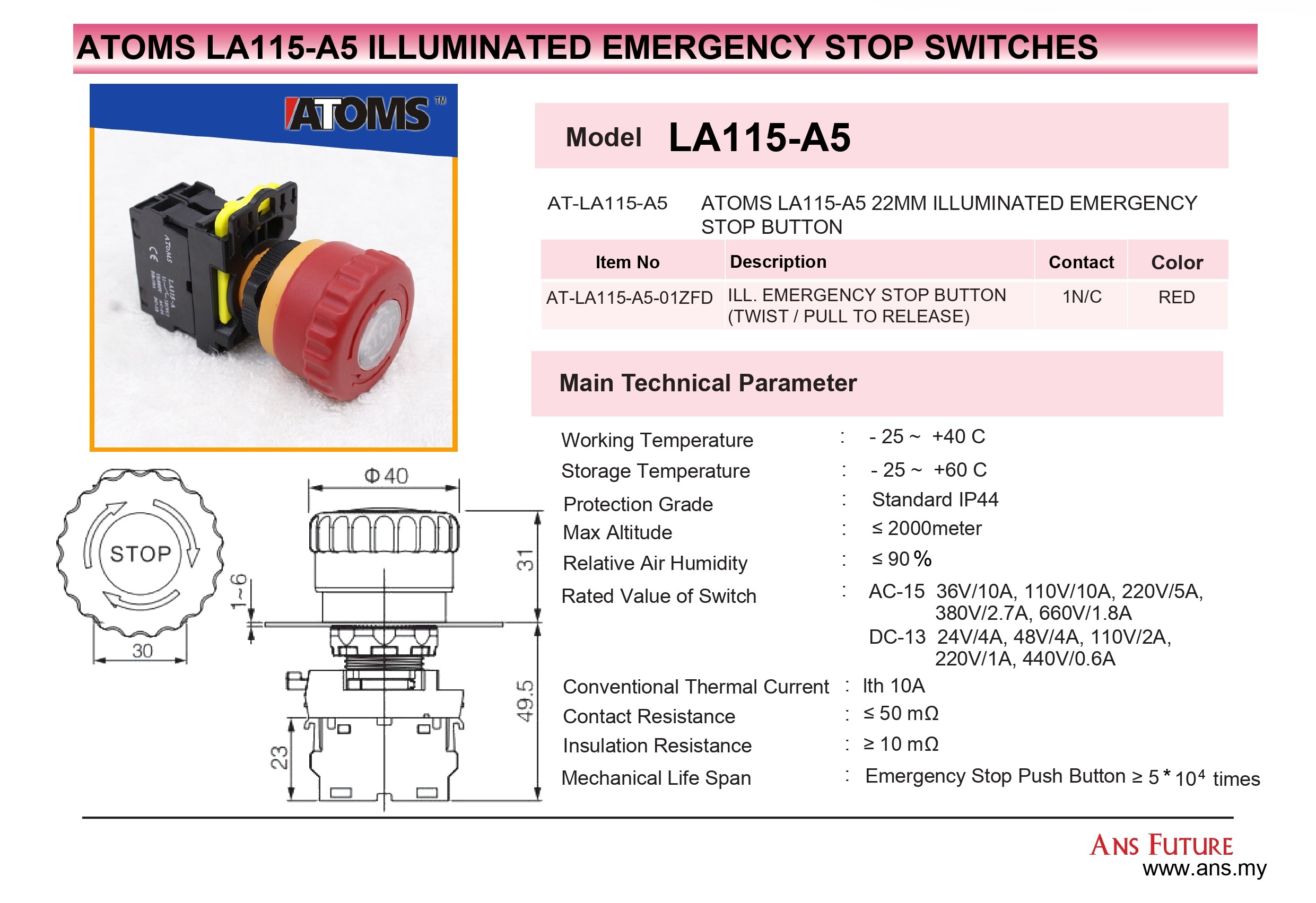 ATOMS LA115-A5 Illuminated Emergency Stop Switches