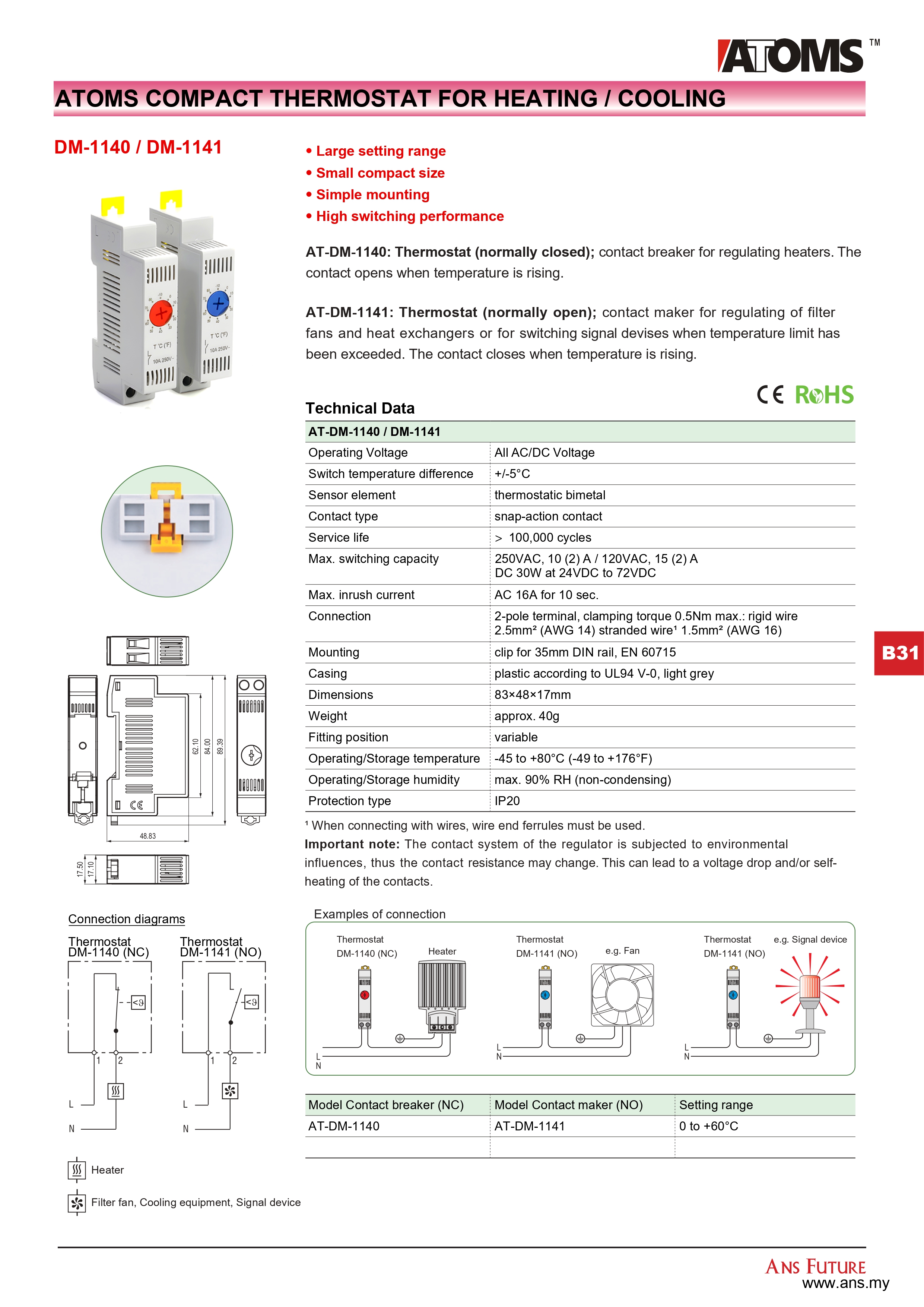 ATOMS Compact Thermostat For Heating & Cooling (DM-1140/DM-1141)