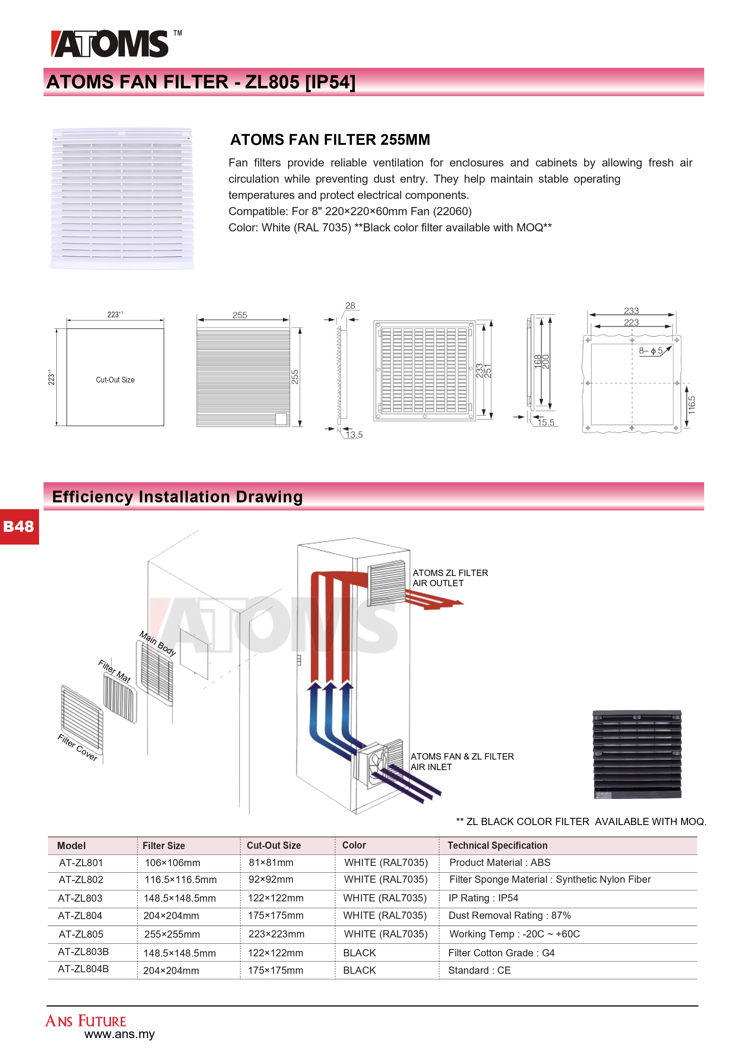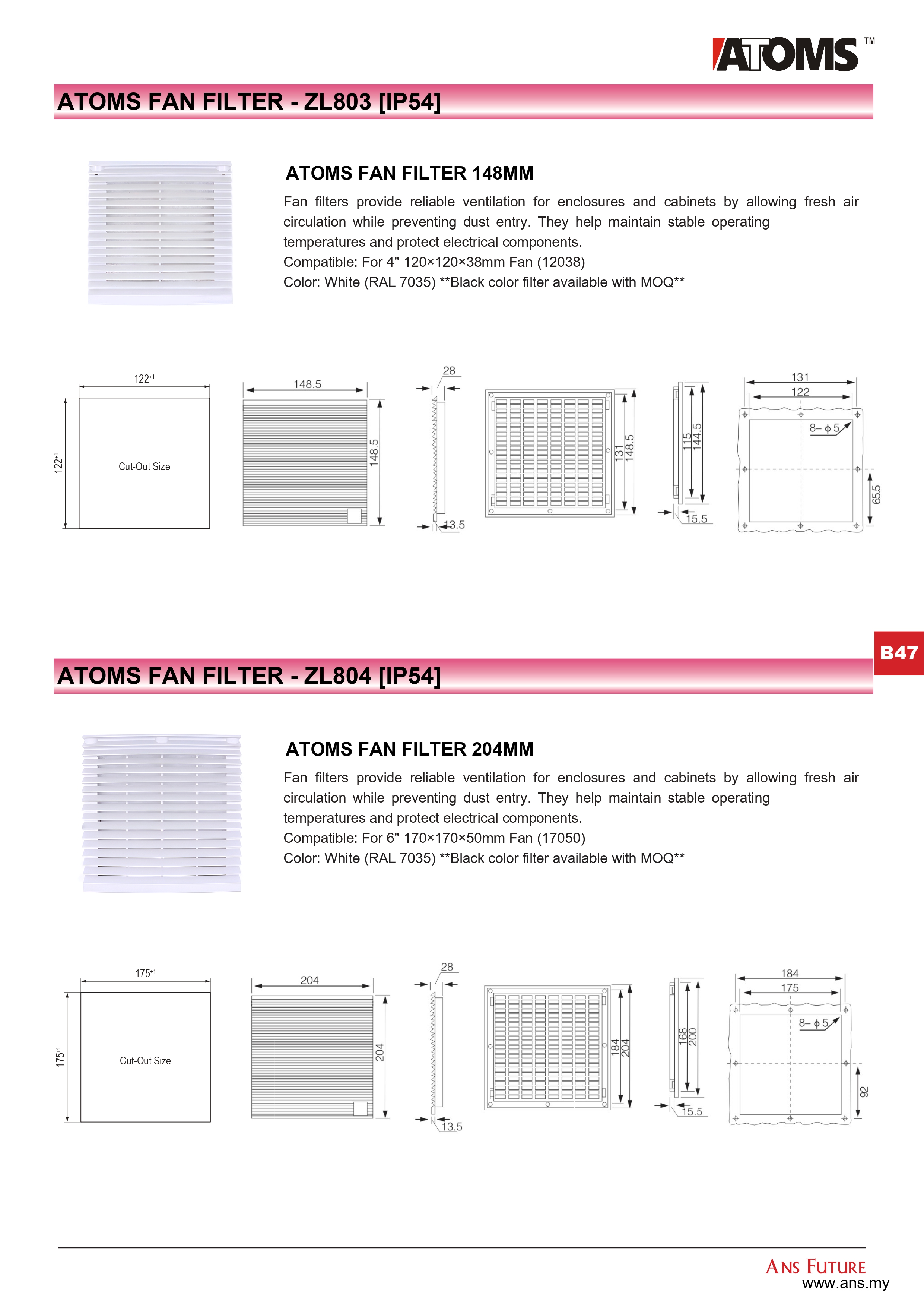 ATOMS Fan Filter - ZL801, ZL802, ZL803, ZL804, ZL805