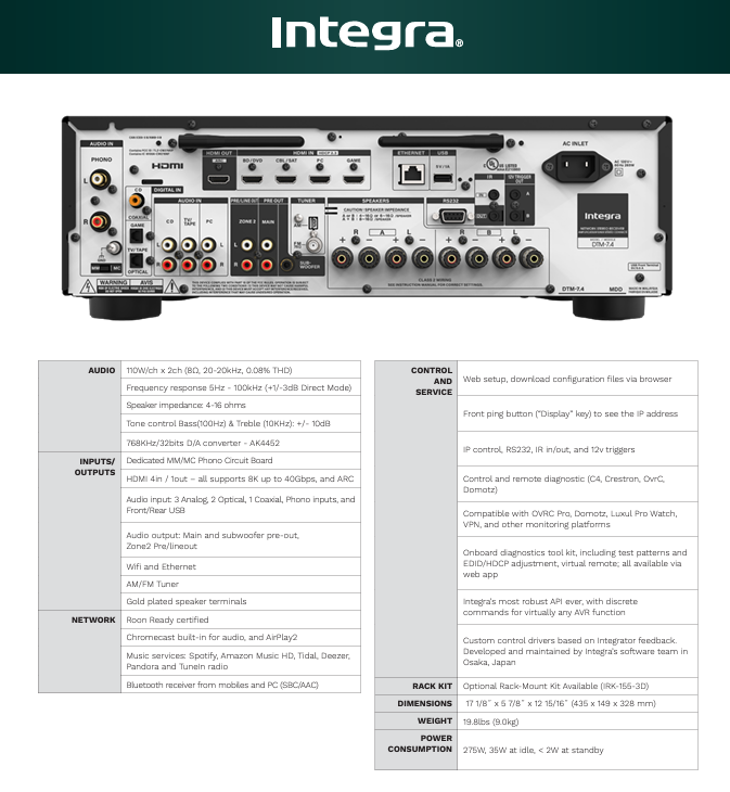 Integra DTM 7.4 HiFi Network Stereo Receiver