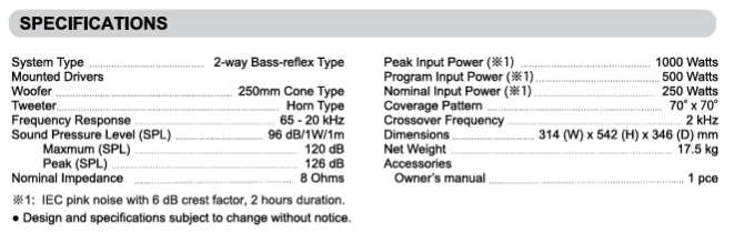 BIK BSP 810 II 10'' 2 Way 250W Full Range Loudspeaker