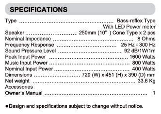 BIK BJ W66 PLUS 10'' 400W Passive Subwoofer