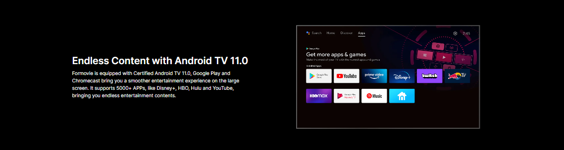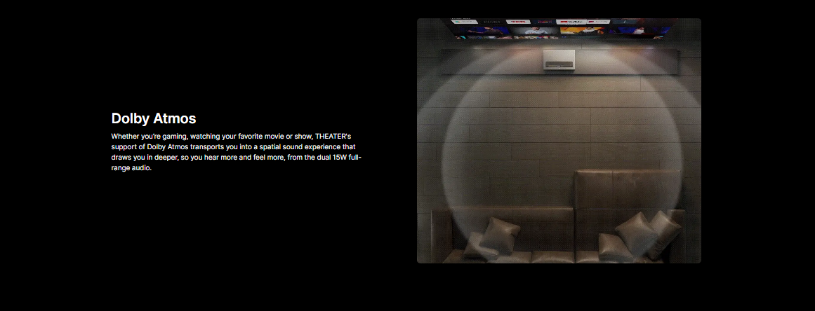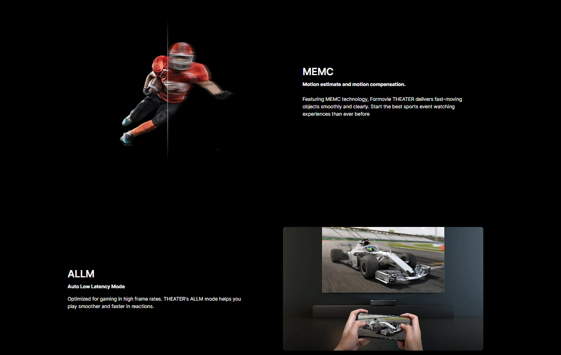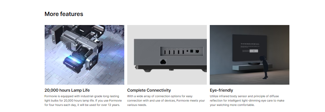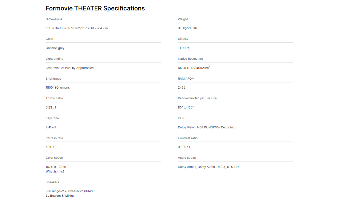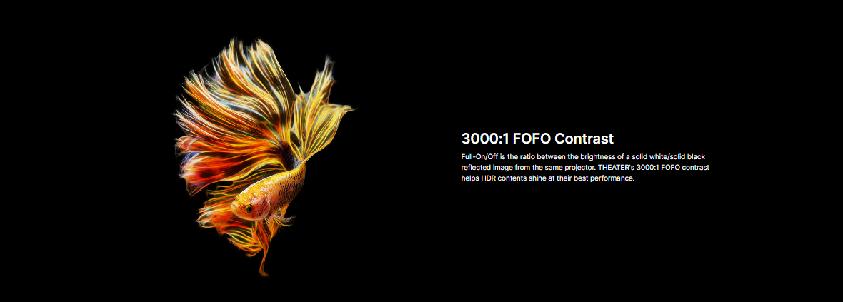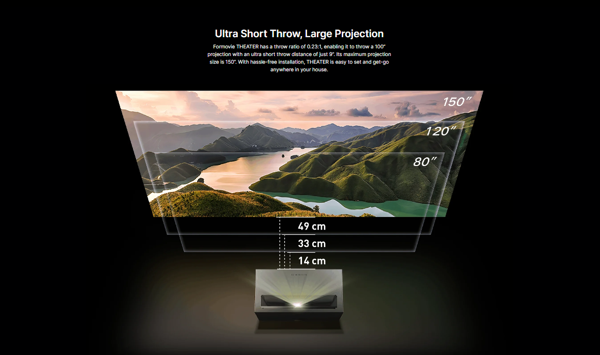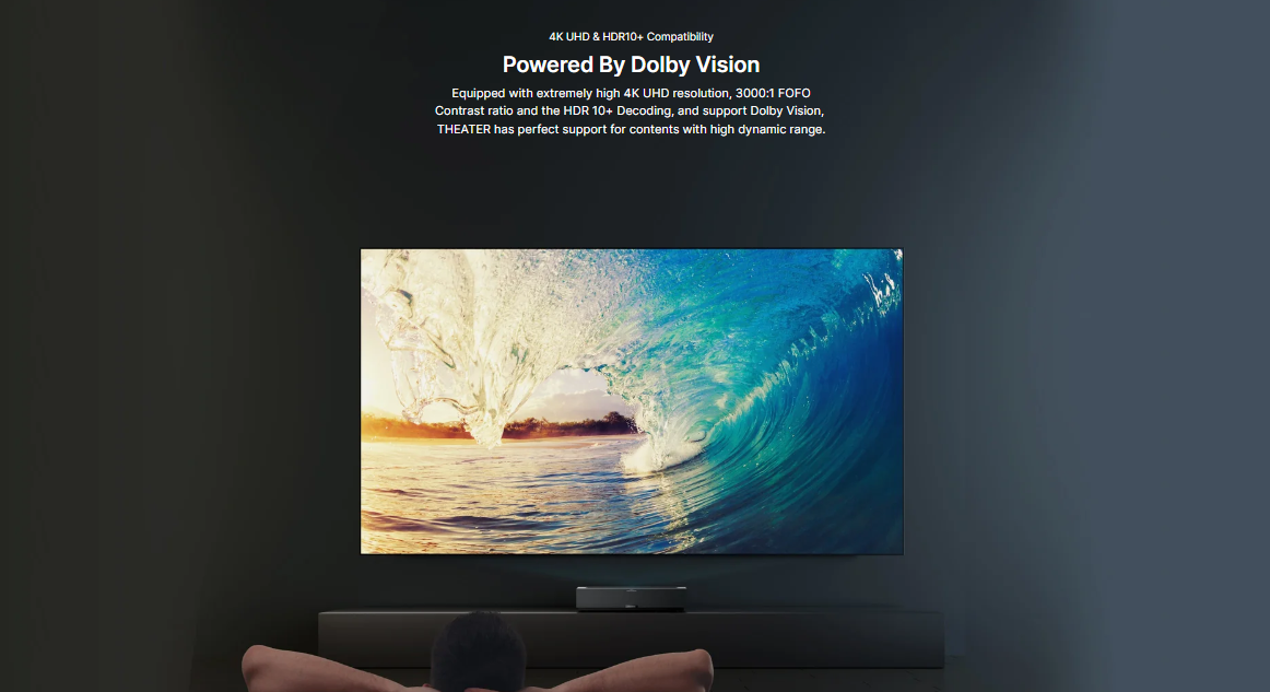 Formovie THEATER uses the latest ALPD®4.0 triple laser light source technology, 30% more powerful than ALPD® 3.0. Outputing 107% of Rec.2020 color gamut, and over 1.07 billion colors for superior contrast and color accuracy.