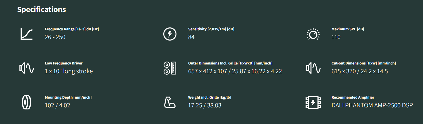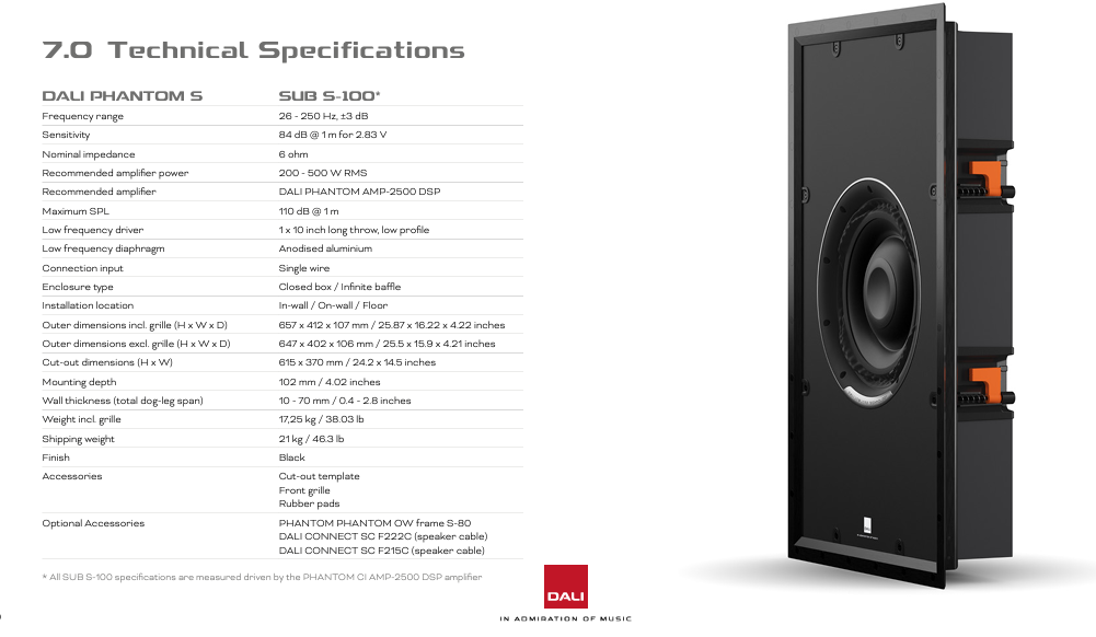 Dali Phantom IW SUB S-100 In Wall Subwoofer