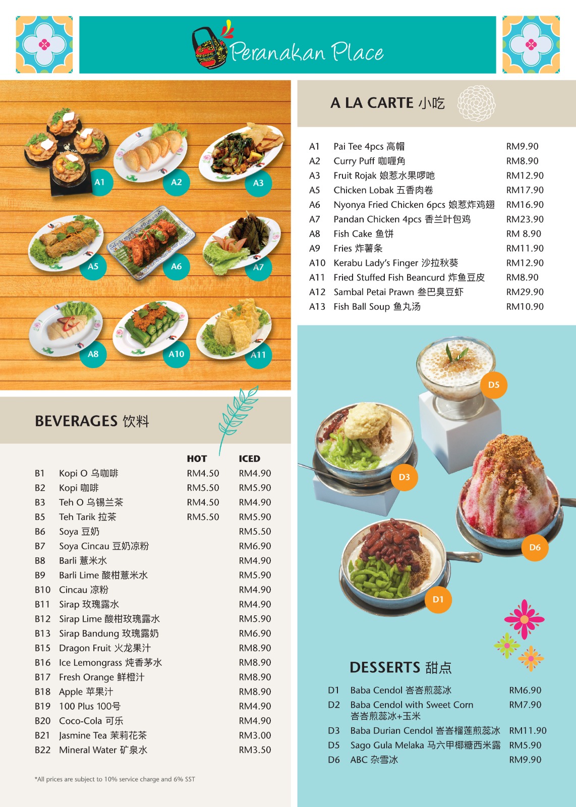 *Enjoy our delicious Peranakan cuisine at all Peranakan Place outlets with our latest pricing and menu updates! Please note, these updates are applicable at all locations except our Genting Premium Outlet.