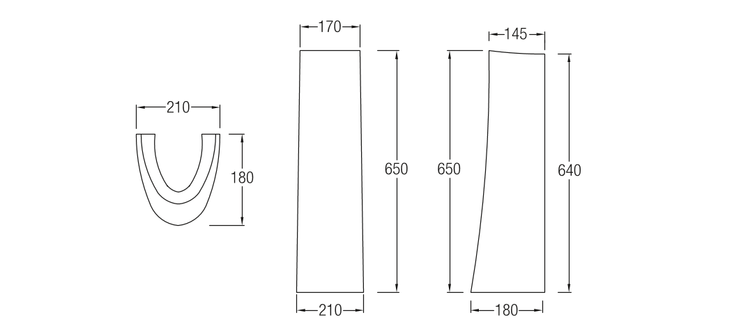 L 180 x W 210 x H 650 mm