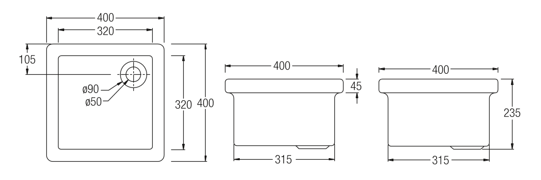 L 400 x W 400 x H 235 mm