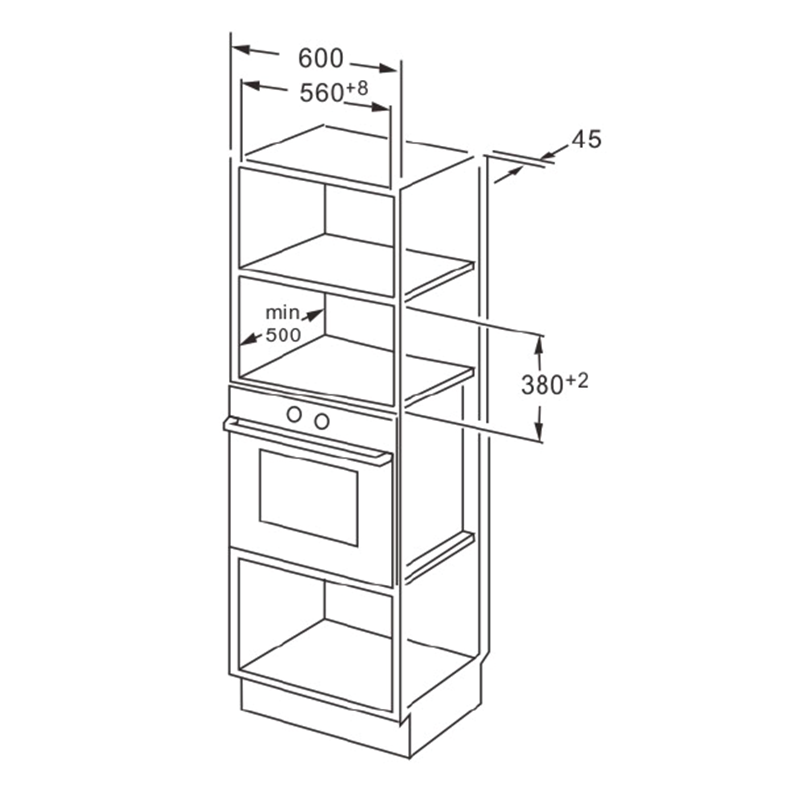 Product Dimension (mm) : 595 W x 410 D x 388 H Build In Dimension (mm) : 560 W x 500 D x 380 H |