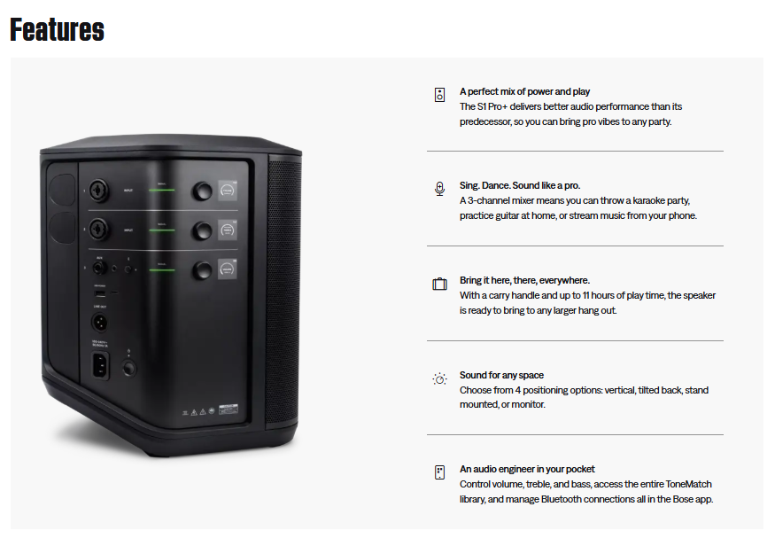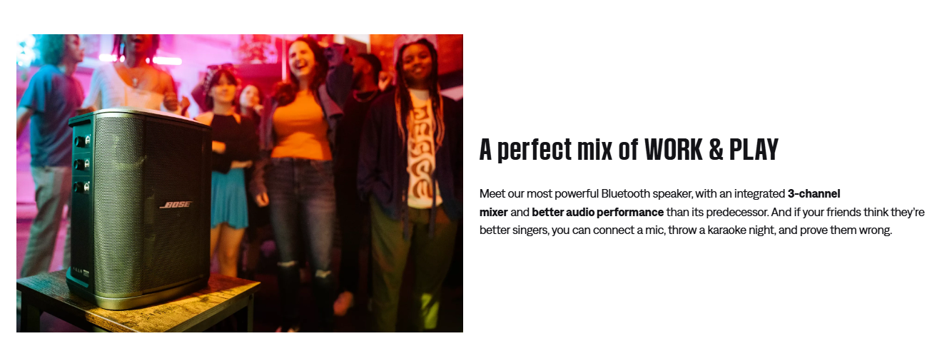 It’s a pro move to bring big sound wherever you want music. Versatile, portable, powerful — the S1 Pro+ Wireless Speaker is your go-to for adding vibes to the backyard, bar, park, or any larger gathering. With a 3-channel mixer, you can stream a playlist, plug in a microphone, or your favorite instrument. Go with whatever the night calls for. And now you can simplify setup and get to the music faster when you add wireless RF accessories for mics and instruments. They pair effortlessly to the S1 Pro+ and store right in the speaker itself so they’re always ready for the next song.
